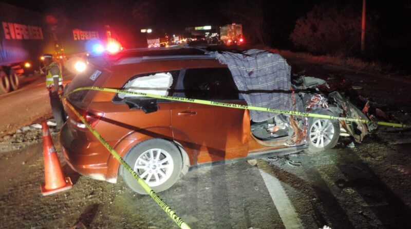 RINCÓN DE ROMOS, AGS.- Un muerto y dos lesionados fue el saldo que dejó un fuerte accidente ocurrido la madrugada de este lunes, tras de que una camioneta chocó contra un tráiler y luego fue impactada por otro camión de carga.