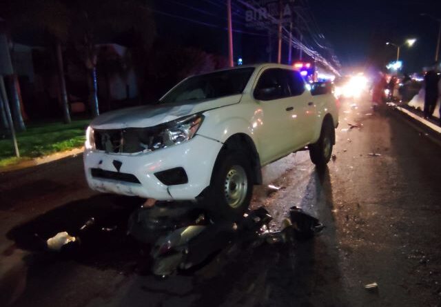 Sin embargo, justo en esos momentos apareció en escena una camioneta Nissan Frontier, en color blanco y con placas de circulación AC-6945-E, conducida por Miguel Ángel González García, de 50 años de edad y con domicilio en el fraccionamiento San Telmo, que arrolló a los dos motociclistas, a Gilberto y a la mujer.