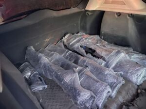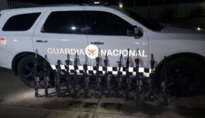 Al inspeccionar el vehículo, los guardias nacionales localizaron 13 armas de fuego largas y tres armas cortas envueltas en plástico transparente, por lo que fueron aseguradas y puestas a disposición de la Fiscalía General de la República con sede en Zacatecas.