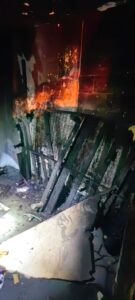 El fuego consumió una televisión, ropa, cuadros varios, así como la base y el colchón de la cama donde el quincuagenario descansaba al ser agredido.