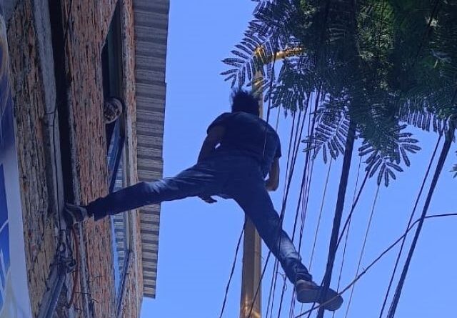 ¡Hombre que cayó de unos cables de luz y TELMEX desde varios metros de altura en Aguascalientes está grave!
