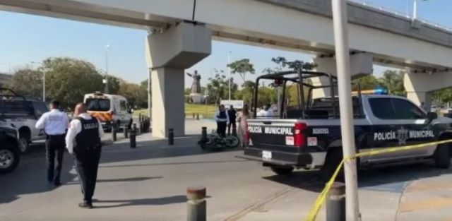 A bordo de una motocicleta Italika, tipo cross, en colores negro y verde, circulaba dentro de la glorieta ubicada en dichas vialidades cuando apareció en escena la patrulla, que provenía de Quinta Avenida de norte a sur.