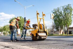 En lo que va del año 2026 se ha realizado el bacheo aproximado de 6 mil metros cuadrados con asfalto caliente, producido en la planta asfaltadora propia del municipio de Jesús María, la cual produce alrededor de 30 toneladas al día.