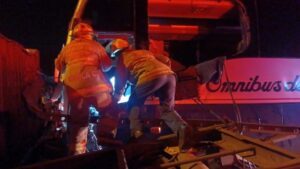 También acudieron paramédicos del ISSEA en la ambulancia ECO-337 y elementos del cuerpo de Bomberos del Estado y Municipales de Jesús María y Pabellón de Arteaga, que encontraron a Luis de Jesús prensado de sus piernas en la cabina del autobús y tuvieron que rescatarlo con apoyo del equipo hidráulico “las quijadas de la vida”.