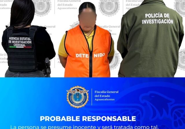 Agentes de la Policía de Investigación Criminal la ubicaron y arrestaron en la avenida Circuito Aguascalientes Sur, en el fraccionamiento Valle de Aguascalientes, y la trasladaron a las instalaciones de la Fiscalía.
