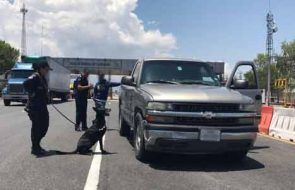 Tras informarle al chofer de su falta al Reglamento de Tránsito para Carreteras y Puentes de Jurisdicción Federal y efectuar una inspección con apoyo del binomio canino, éste modificó su conducta al olfatear a la altura de la transmisión.