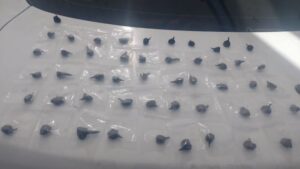 El individuo dijo responder al nombre de Víctor “N”, durante la inspección corporal preventiva que se le practicó entre sus pertenencias le localizaron 163 envoltorios de plástico de diferentes colores que contenían en su interior piedra granulada con las características propias del “crystal”, que dieron un peso aproximado de 200 gramos, motivo por el que fue asegurado en ese momento.