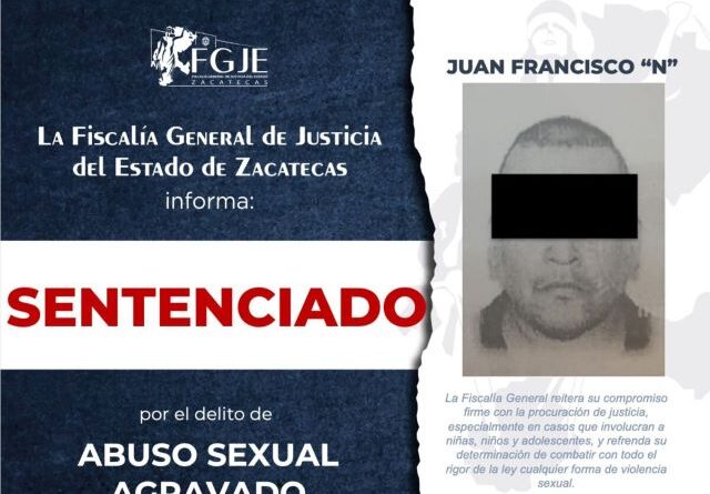 ZACATECAS, ZAC.- La Fiscalía General de Justicia del Estado de Zacatecas, como resultado del trabajo ministerial efectuado por personal del Distrito de Jalpa, obtuvo fallo condenatorio por el delito de abuso sexual agravado en perjuicio de una menor de edad.