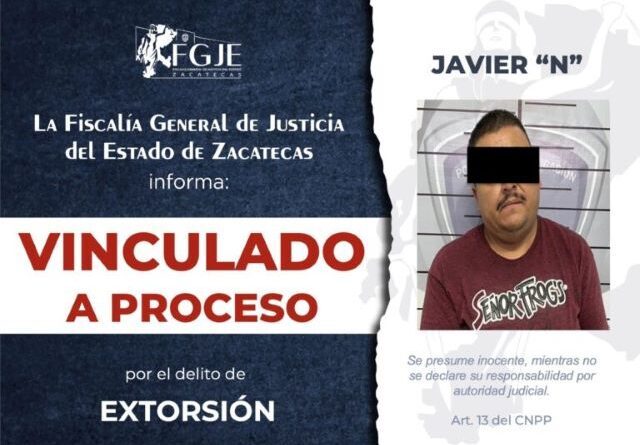 ZACATECAS, ZAC.- El equipo de investigación adscrito a la Fiscalía Especializada en Delitos de Alto Impacto logró la vinculación a proceso en contra de Javier “N” por el delito de extorsión, como medida cautelar se impuso prisión preventiva.