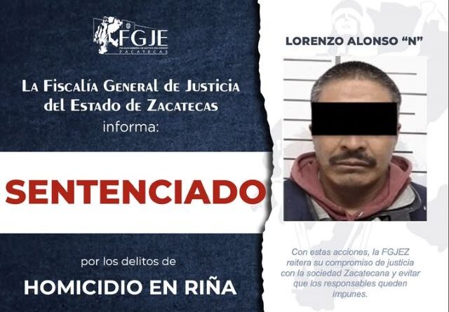 ZACATECAS, ZAC.- El equipo de investigación adscrito a la Fiscalía Especializada en Delitos de Alto Impacto obtuvo sentencia condenatoria mediante procedimiento abreviado en contra de Lorenzo Alonso “N” por el delito de homicidio en riña, consistente en cuatro años y un mes de prisión y la reparación integral del daño.