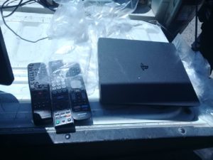 Ante esto, los oficiales iniciaron la persecución del presunto responsable y a los pocos metros llevaron a cabo la detención de quien dijo llamarse Alberto, alias “El Beto”, de 40 años de edad, quien llevaba la pantalla en los brazos y en una bolsa el Play Station así como tres controles para televisión, objetos que identificó plenamente el afectado.