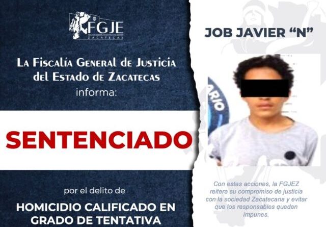 ZACATECAS, ZAC.- La Unidad de Investigación y Litigación de la capital obtuvo una sentencia condenatoria a través de un procedimiento abreviado, una forma de terminación anticipada del proceso, de 8 años 10 meses y una semana de prisión en contra de Job Javier “N” por el delito de homicidio calificado en grado de tentativa en perjuicio de la Guardia Nacional y SEDENA.