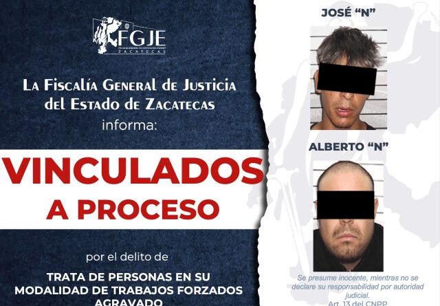 GUADALUPE, ZAC.- El equipo de investigación adscrito a la Fiscalía de Alto Impacto logró la vinculación a proceso por el delito de trata de personas en su modalidad de trabajos forzados en contra de Guadalupe “N”, Ariana “N”, Karla “N”, José “N” y Alberto “N”, a quienes se les impuso medida cautelar de prisión preventiva.