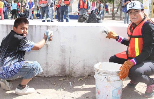 Durante la realización de tareas de limpieza y pintura en vialidades, banquetas y el parque de esta localidad, la Presidenta Municipal externó su complacencia ante la positiva participación en este programa, que de la mano de la ciudadanía, efectuará semanalmente en diferentes puntos para fomentar la unidad social y el sentido de pertenencia de las familias hacia su comunidad, cuidando los espacios públicos.