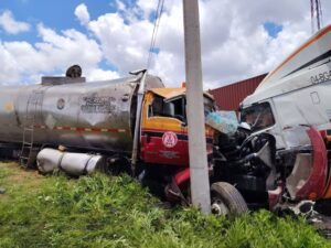 MORELOS, ZAC.- Un choque entre un tráiler y una pipa dejó un saldo de dos lesionados y daños materiales estimados en varios miles de pesos.