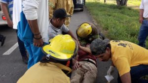 De la misma forma, se percataron que en interior de la unidad se encontraba el conductor atrapado, quien viste un pantalón de mezclilla y una playera roja, tras lo cual procedieron a rescatarlos y trasladados a las instalaciones del Hospital Hidalgo en calidad de desconocidos, donde su estado se reporta como de pronóstico reservado.