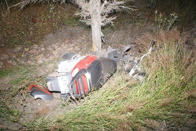 Se accidentó en una motocicleta Italika, de 150 centímetros cúbicos, color rojo, modelo 2010, con placas de circulación A901A de Aguascalientes, que quedó destrozada tras el incidente.