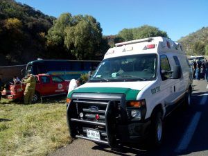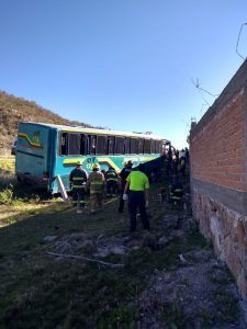 CALVILLO, AGS.- La mañana de este miércoles, se registró un accidente, sobre la carretera federal 70 poniente a la altura del kilómetro 32 en el que un camión de pasajeros se salió del camino luego de que el conductor perdiera el control de la unidad, incidente que dejó como saldo 8 personas lesionadas, de las cuales solo 5 fueron trasladadas a recibir atención médica al Hospital General de Calvillo.