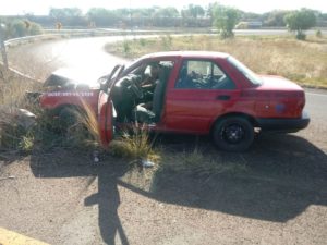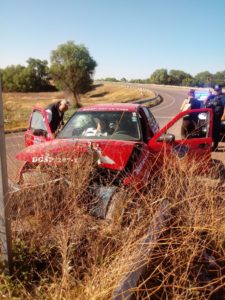 SAN FRANCISCO DE LOS ROMO, AGS.- En la entrada al Municipio de San Francisco de los Romo, se registró un hechos de tránsito terrestre, tipo salida de camino, en el que el conductor de un vehículo Nissan Tsuru rojo, perdió el control al desplazarse por la curva y se impactó contra una valla metálica.