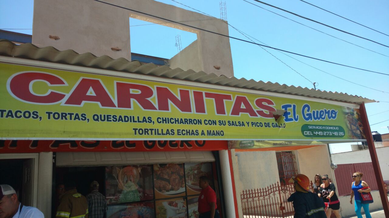 JESÚS MARÍA, AGS.- Se registró un incendio en la negociación denominada “Carnitas El Güero” ubicada en el Municipio de Jesús María, el cual se suscitó cuando un cilindro de gas que se encontraba cerca de una parrilla se prendió repentinamente. Afortunadamente no se registraron personas lesionadas.