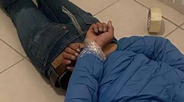 Al llegar, tuvo que abrir la puerta con una copia de la llave y al ingresar encontró a la víctima tirada en el piso, boca abajo, con las manos amarradas a la espalda con cinta adhesiva, la cual también tenía en el rostro cubriéndole la boca y la nariz.