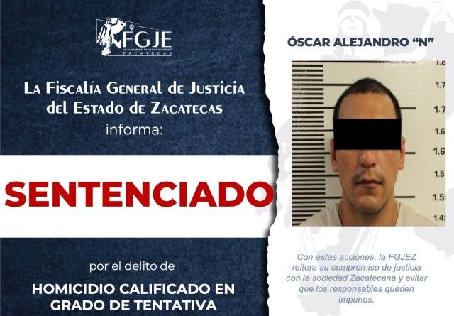 ZACATECAS, ZAC.- La Unidad de Investigación Mixta de Calera obtuvo sentencia condenatoria en contra de Óscar Alejandro “N”, declarado responsable por el delito de homicidio calificado en grado de tentativa en perjuicio de una persona.