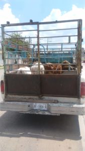 Finalmente, en coordinación con elementos de la Policía Municipal de Rincón de Romos, elementos de la Policía Estatal que realizaban sus labores de vigilancia por la carretera estatal 26, se percataron de la presencia de una camioneta marca Ford tipo pick-up blanca, en la cual se transportaban cinco cabezas de ganado.