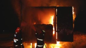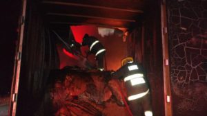 Al llegar al lugar, se percataron de que las llamas consumían la caja de un tráiler marca Freigthliner gris, modelo 2016, con placas de circulación del Servicio Público Federal.