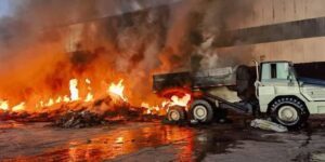 ¡Sofocaron bomberos incendio de material reciclable en una nave industrial en Guadalupe!