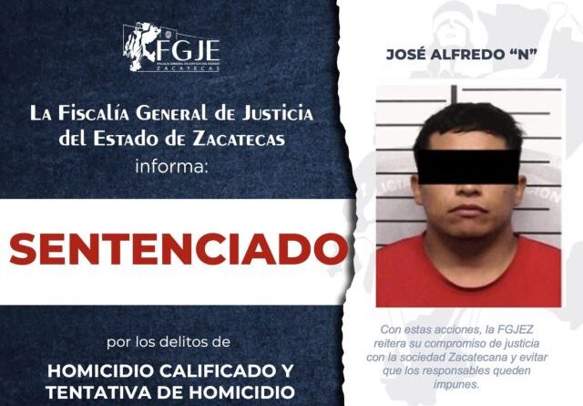 FRESNILLO, ZAC.- La Unidad de Homicidios Dolosos de la Vicefiscalía Distrital de Fresnillo obtuvo sentencia condenatoria en contra de José Alfredo “N” por el delito de homicidio calificado y tentativa de homicidio calificado en perjuicio de dos personas.