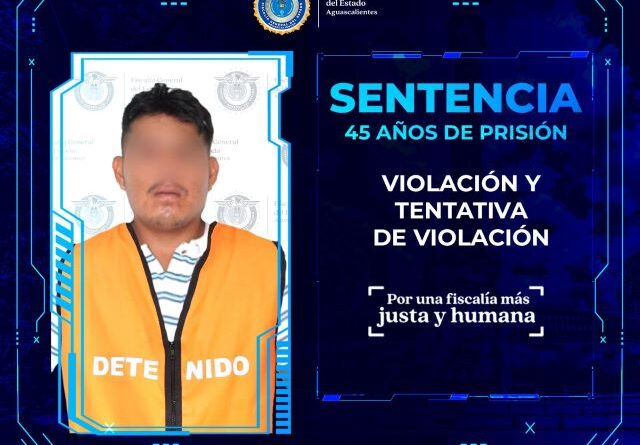 AGUASCALIENTES, AGS.- Un sujeto que en diversas ocasiones violentó sexualmente a una adolescente en los municipios de Tepezalá y San Francisco de los Romo fue sentenciado a 45 años de prisión.