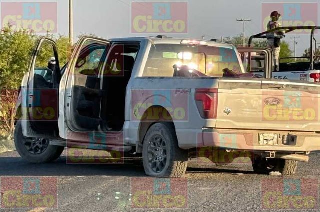 Las autoridades hallaron en el sitio una camioneta Ford Lobo, de doble cabina, en color blanco, que tenía las llantas ponchadas, el frente chocado y el parabrisas roto, detectando en su interior armas de fuego, unas maletas y una hielera.