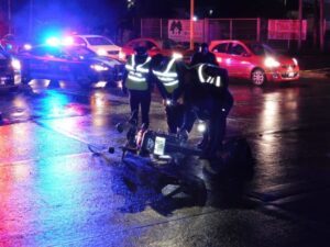 AGUASCALIENTES, AGS.- Policías viales de Aguascalientes, en coordinación con uniformados de la Policía Preventiva del Municipio capital, atendieron el reporte de accidente que se registró en el cruce de las avenidas Constitución y Siglo XXI, en el que lamentablemente un motociclista perdió la vida.