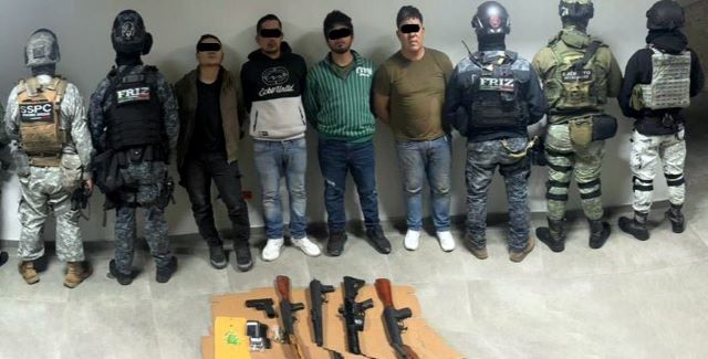 Durante la intervención se detuvo a cuatro masculinos identificados como Ángel Moisés “N”, de 24 años, originario de Yucatán; Imer “N”, de 34 años, de Guerrero; Carlos “N”, de 24 años, de Oaxaca; y Noé Salvador “N”, de 30 años, originario de Guadalajara, mismos que podrían estar relacionados con los recientes homicidios registrados en los municipios de Fresnillo y Zacatecas.
