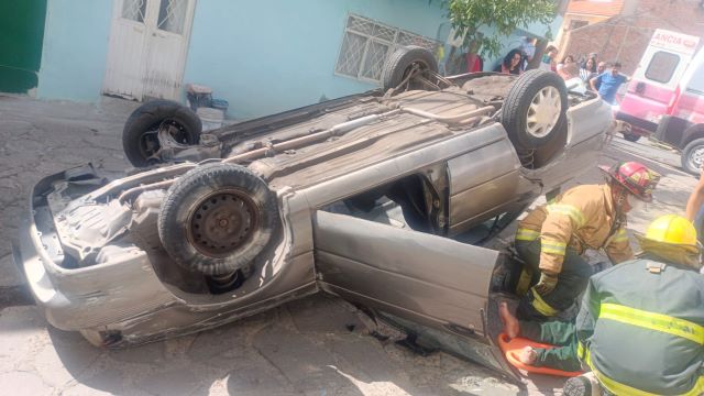 Por lo anterior, al sitio acudieron elementos de la Coordinación Estatal de Protección Civil, que encontraron volcado un auto Nissan Tsuru, en color gris, y atrapado en la cabina al adulto mayor.