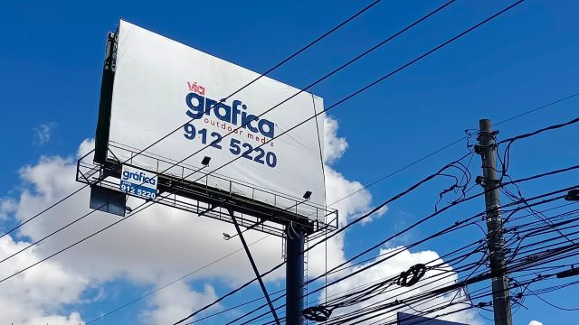 Algunos trabajadores de una empresa llegaron al sitio a bordo de una camioneta para colocar la lona en el espectacular, al cual subieron.