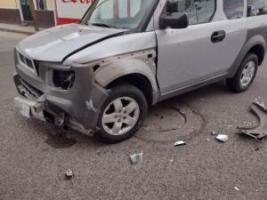 Fue embestido por una camioneta Honda Element, en color gris, modelo 2014 y con placas de Aguascalientes, conducida por Gloria, de 48 años, que circulaba por la segunda arteria señalada hacia el norte y nada pudo hacer por evitar el encontronazo.