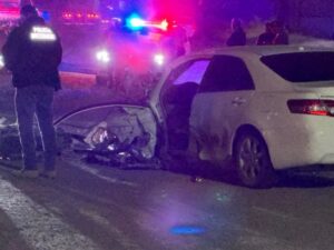 El coche siguió avanzando aproximadamente 100 metros con la motocicleta debajo y posteriormente impactó los neumáticos del tráiler, que se desplazaba de sur a norte, lo que provocó que el Toyota girara de manera violenta hacia su izquierda, proyectando al motociclista hacia el lado poniente de la carretera, quedando el cuerpo sobre el acotamiento, mientras que el auto y la motocicleta terminaron en el acotamiento de lado oriente.