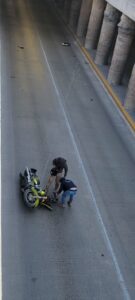 Tras la colisión, la motocicleta, en colores verde, plateado y negro, fue proyectada a aproximadamente 400 metros hacia el frente del punto del impacto.