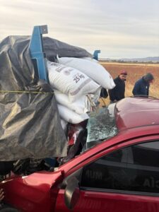 Los servicios de emergencia fueron alertados sobre el hecho, por lo que al sitio acudieron elementos de Seguridad Pública de Río Grande, que confirmaron que un auto en color rojo se había impactado contra la parte trasera de una traila cargada con costales con frijol y que remolcaba un tractor.