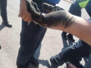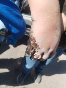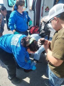 Sobre la carretera federal 70 Oriente, a la altura del entronque a la comunidad Norias de Paso Hondo, los policías fueron interceptados por los paramédicos, que auxiliaron a tres de las víctimas, Laura “N”, de 58 años, que sufrió una quemadura de primer grado en la pierna derecha; María Asunción “N”, de 58, que presentaba una crisis nerviosa, y Nancy “N”, de 25 años, que resultó con una abrasión en la espalda.