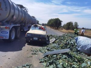 El adulto mayor conducía una camioneta Ford, en color crema y con placas de Aguascalientes, cargada con coliflor, cuando de pronto sufrió una volcadura y resultó lesionado de gravedad.