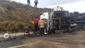 Al arribar, confirmaron que se trataba de la volcadura de una pipa con material peligroso y al tratar de auxiliar al operador verificaron que ya había fallecido.