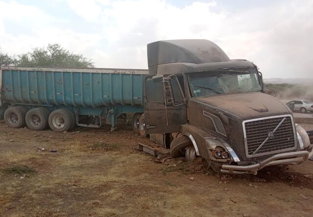 Tras recibir reportes sobre el percance, al sitio acudieron elementos de la Coordinación Estatal de Protección Civil, que fuera del camino encontraron un tractocamión quinta rueda, que se impactó contra un árbol y un montículo de tierra.