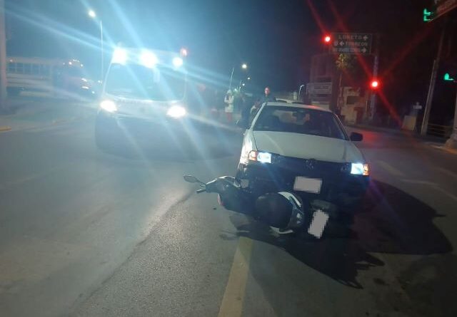 RÍO GRANDE, ZAC.- Un automovilista impactó a un motociclista, que resultó lesionado y fue trasladado a un hospital a recibir atención médica.