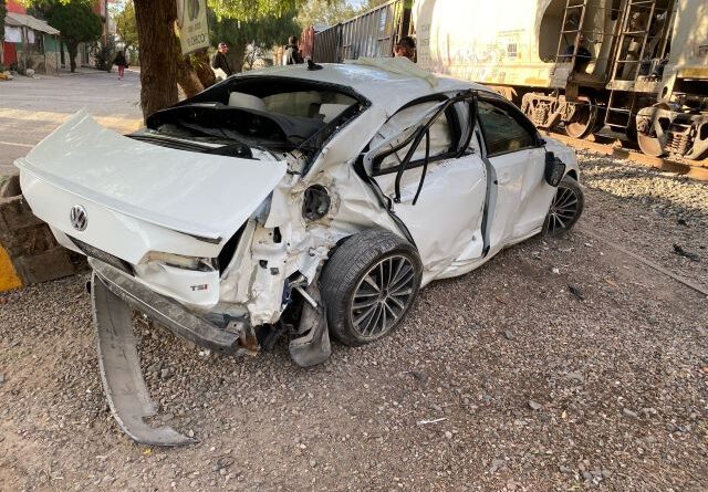 ¡Tras ser impactado por el tren en Aguascalientes automovilista resultó lesionado de consideración!