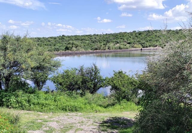 El comandante Sánchez López, en compañía de tres elementos de Protección Civil, dos varones y una mujer, llegaron a la presa El Garabato como parte de la supervisión de los cuerpos de agua para checar los niveles de captación.