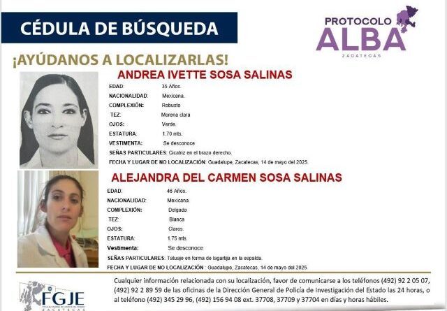 El lunes 19 de mayo la Fiscalía difundió la cédula de búsqueda de Andrea Ivette Sosa Salinas, de 35 años, y Alejandra del Carmen Sosa Salinas, de 46, que comenzó a circular en redes sociales, mencionándolas como las hijas del médico.