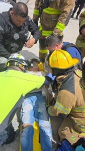 AGUASCALIENTES, AGS.- Dos trabajadores que realizaban labores de electricidad en una empresa de bolsas en el fraccionamiento Lomas del Picacho, en el poniente de la ciudad, quedaron atrapados entre escombros luego de registrarse el colapso de una estructura, por lo que los bomberos los rescataron y paramédicos del ISSEA los trasladaron a recibir atención médica al Hospital Tercer Milenio.
