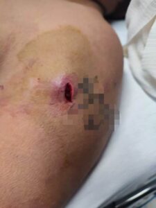 Al brindarle los primeros auxilios le diagnosticaron una herida punzo-penetrante en el hombro izquierdo, determinando que había sido provocada con un arma blanca y no con una pistola como inicialmente trascendió.